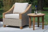 - Teak and Ash Outdoor Wicker Arm Chair w Sunbrella Outdoor Cushions