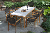 To maintain its natural color and preserve the integrity of the wood, solid teak furniture should be oiled at least twice a year. Use a high-quality teak oil or refined/boiled linseed oil formulated for outdoor use. After application, wipe away any excess oil with a dry cloth about an hour later. Hardwood oils will stain rope. If the rope becomes soiled, gently spot clean using a mild detergent and soft-bristle brush. Caution: Oil-soaked rags can be flammable—dispose of them with care. For added protection, cover or store furniture during harsh weather or winter months.