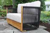 Teak and Black Rope Outdoor Loveseat w Sunbrella