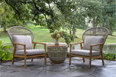 Teak & Cable Wicker Storage Accent Table, 24" Dia. is crafted from FSC-Certified Teak Hardwood, HDPE All-Weather Wicker, Powder-Coated Aluminum for a warm, natural look suited for commercial and residential outdoor settings.
