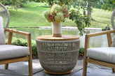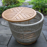 - Teak and Cable Outdoor Wicker Storage Accent Table 24" Round