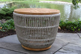 Teak and Cable Outdoor Wicker Storage Accent Table 24" Round