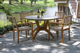 To maintain its natural color and preserve the integrity of the wood, solid teak furniture should be oiled at least twice a year. Use a high-quality teak oil or refined/boiled linseed oil formulated for outdoor use. After application, wipe away any excess oil with a dry cloth about an hour later. Hardwood oils will stain rope. If the rope becomes soiled, gently spot clean using a mild detergent and soft-bristle brush. Caution: Oil-soaked rags can be flammable—dispose of them with care. For added protection, cover or store furniture during harsh weather or winter months.