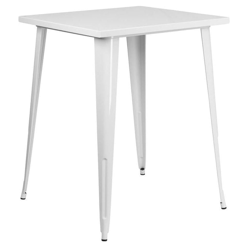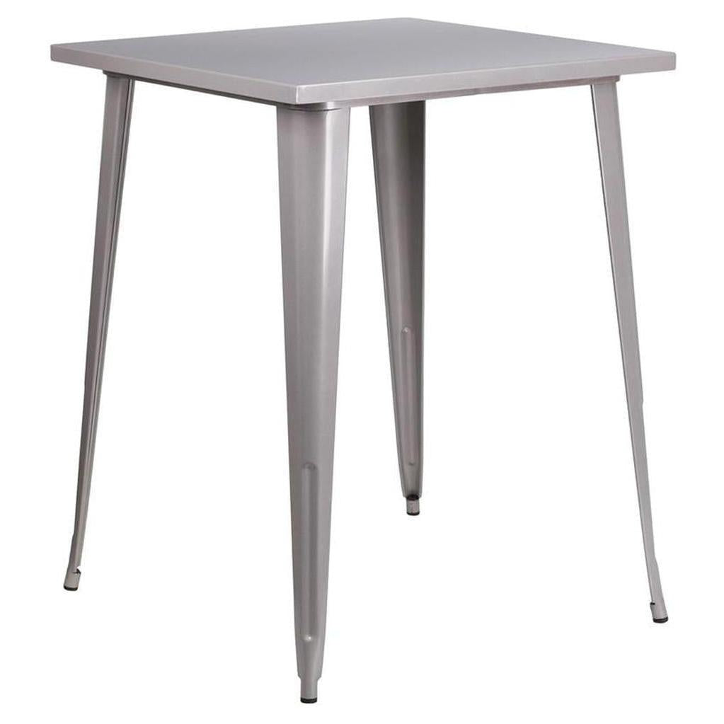 This Tolix Style 31.5'' Square Bar Height Metal Indoor-Outdoor Table is designed to last and look great in your restaurant. This table fits in nicely for restaurants desiring an industrial design and is made of metal and rubber. This table will satisfy for years to come by offering style and durability and is backed by our customer satisfaction return policy and our best price guarantee.