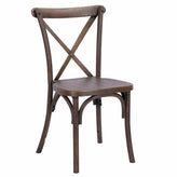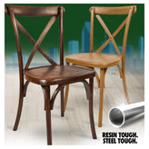 The distinctive look of real wood with the durability of waterproof resin. We asked dozens of event industry professionals to identify wood vs. resin — and none could visually identify the resin chair among wood cross back chairs. And that makes them the perfect choice for the event and wedding industry. You’ll be seeing the classic cross back in all this season’s finest events.