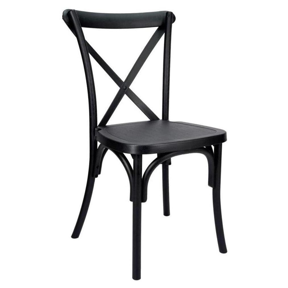 Take the resin vs wood challenge. You can’t tell this chair is resin. It looks and feels just like wood. This cross back chair is a amazing! It’s beautiful, rugged and WATERPROOF! We asked dozens of event industry professionals in our showroom and none of them could visually identify the resin chair among wood cross back chairs. Black ToughResin™ Cross back Chairs are a wonderful addition to the event and wedding industry. It has been accepted greatly, and has quickly become a standard which all event centers and equipment rental companies must have. This cross back chair is made from the strongest resin and looks like a high quality wood dining room chair.