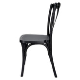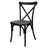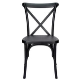 The Black ToughResin™ Cross Back Chair is a resilient alternative in the resin vs wood challenge. Despite its sturdy resin composition, this chair convincingly mimics the look and feel of wood. The Black ToughResin™ Cross Back Chair enhances any setting with its gracefully curved lines and smooth finish, imparting a charming and inviting atmosphere. Our chairs offer both aesthetic appeal and robust stability, ensuring a 100% wobble-free experience.