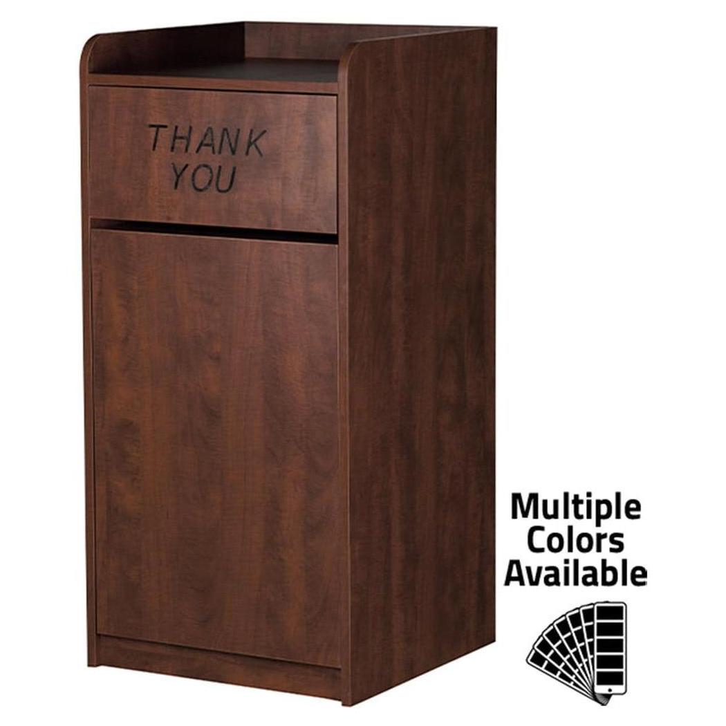 - Swinging access door to conceal trash can/liner, yet easily accessible when the trash needs removed