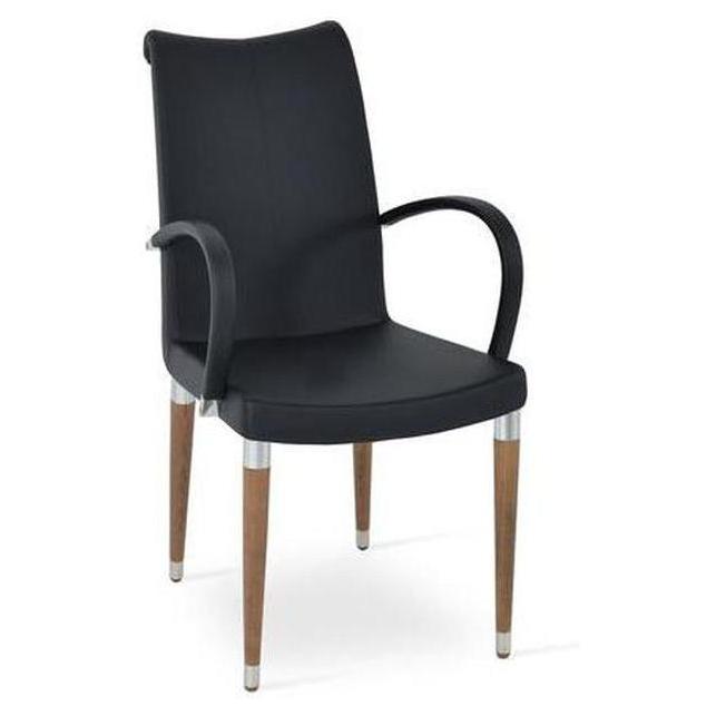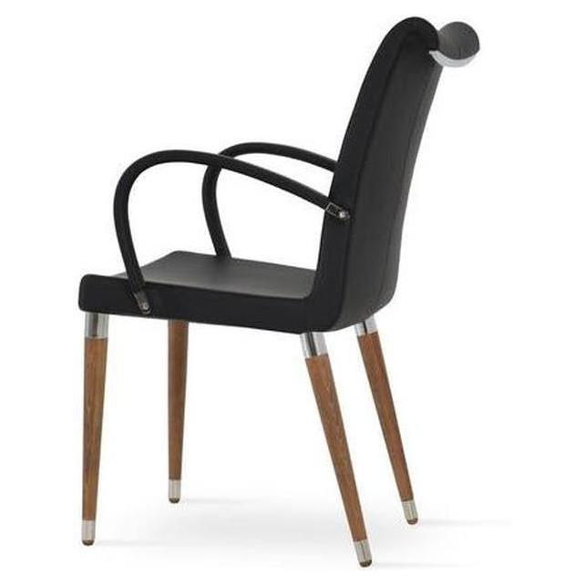 This Tulip Arm Wood is a commercial grade chair designed to last and look great in your restaurant. This chair fits in nicely for restaurants desiring a modern design. It is made of leather, wool fabric. There is a wide range of colors for this chair. This product is backed by our customer satisfaction return policy and our best price guarantee.