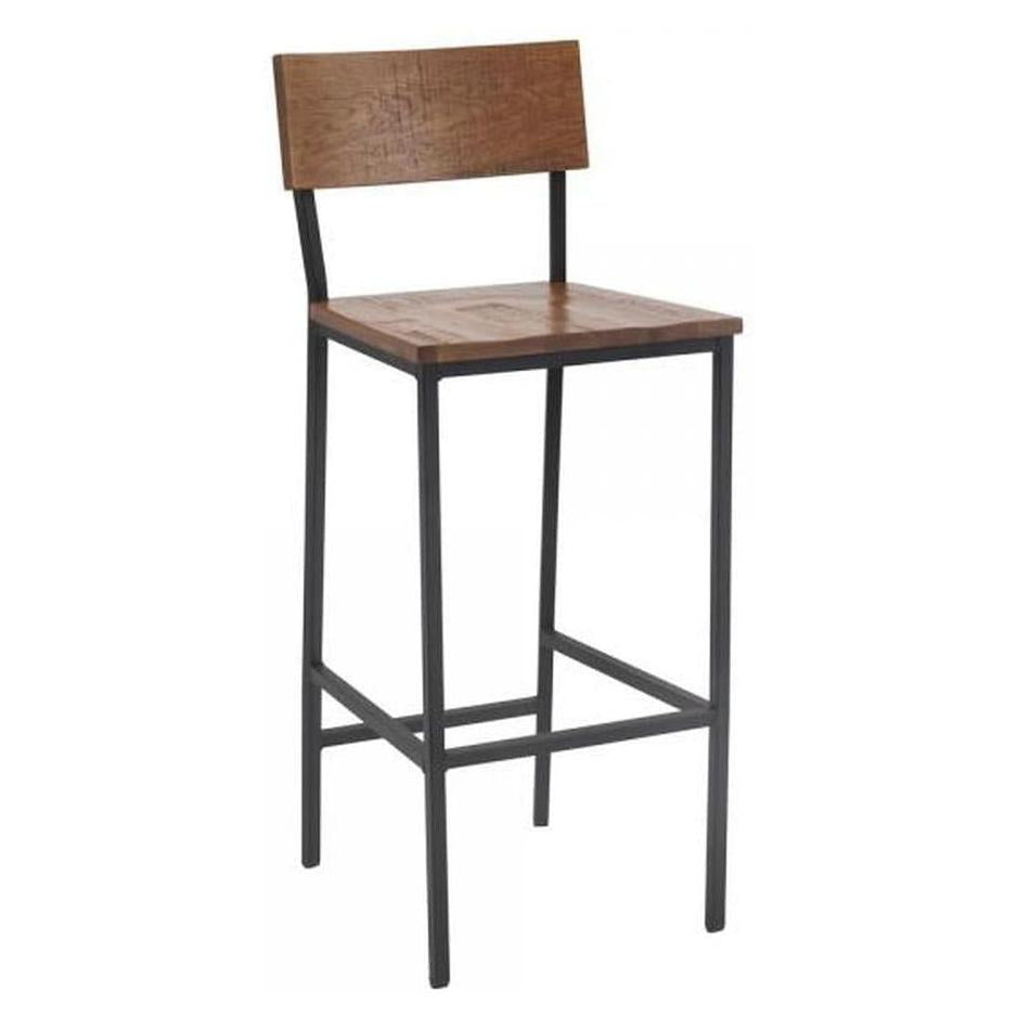 - Tyler Black Metal Bar Stool with Distressed Red Oak