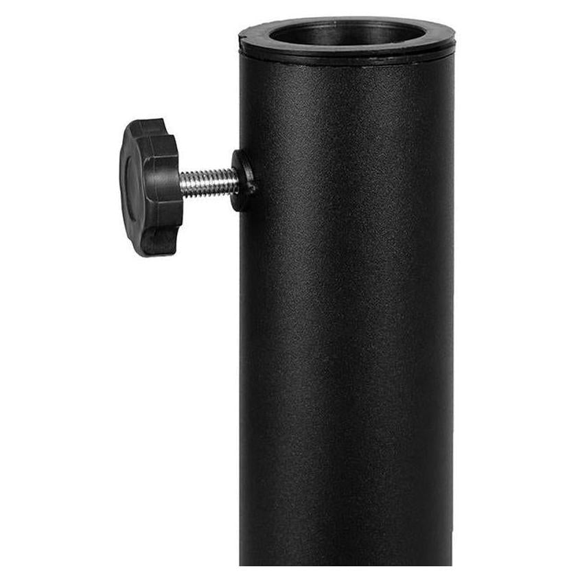 | You've found a fabulous patio umbrella that's just right for your outdoor space. Strength and durability are two of the most important features of any product and this outdoor umbrella base has it all. The sturdy cement foundation is covered by a plastic polymer that will resist mold, mildew, cracking and rotting and will withstand the elements and still look great. The base weighs 30 pounds and will hold up to a 10 ft. umbrella. The powder coated steel post has 3 adapters to accommodate umbrella poles from 1.38 - 1.96 inches and a handy knob to ensure a tight fit. This outdoor patio umbrella stand can be used to hold your umbrella on its own between lounge chairs and seating groups or with a patio table to achieve the design style you love. Pair this great base with our 9 FT Round Umbrella with 1.5" Diameter Aluminum Pole with Crank and Tilt Function for a complete look. | |