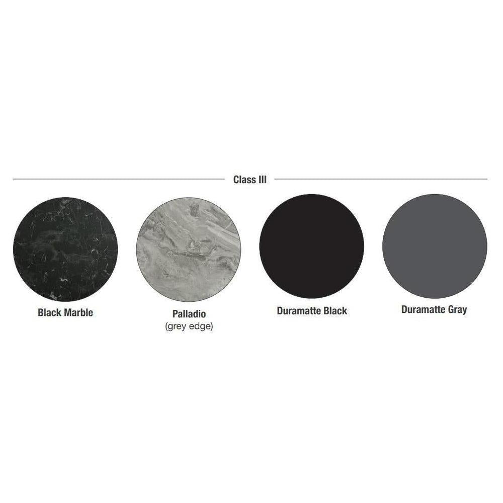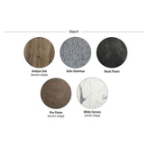 Urban tabletops are perfect for restaurants, bars, patios, and food courts. The tops are made of thermoset resins which are bonded to create a high-density product that is suitable for indoor use or covered outdoor use. Urban tops are tough – resistant to scratches, abrasions, UV rays, and heat. Urban tops are one-half inch in thickness and have black edges, unless otherwise noted. Available in a variety of unique finishes and sizes, with standard or knife edges. Urban will enhance any seating environment.