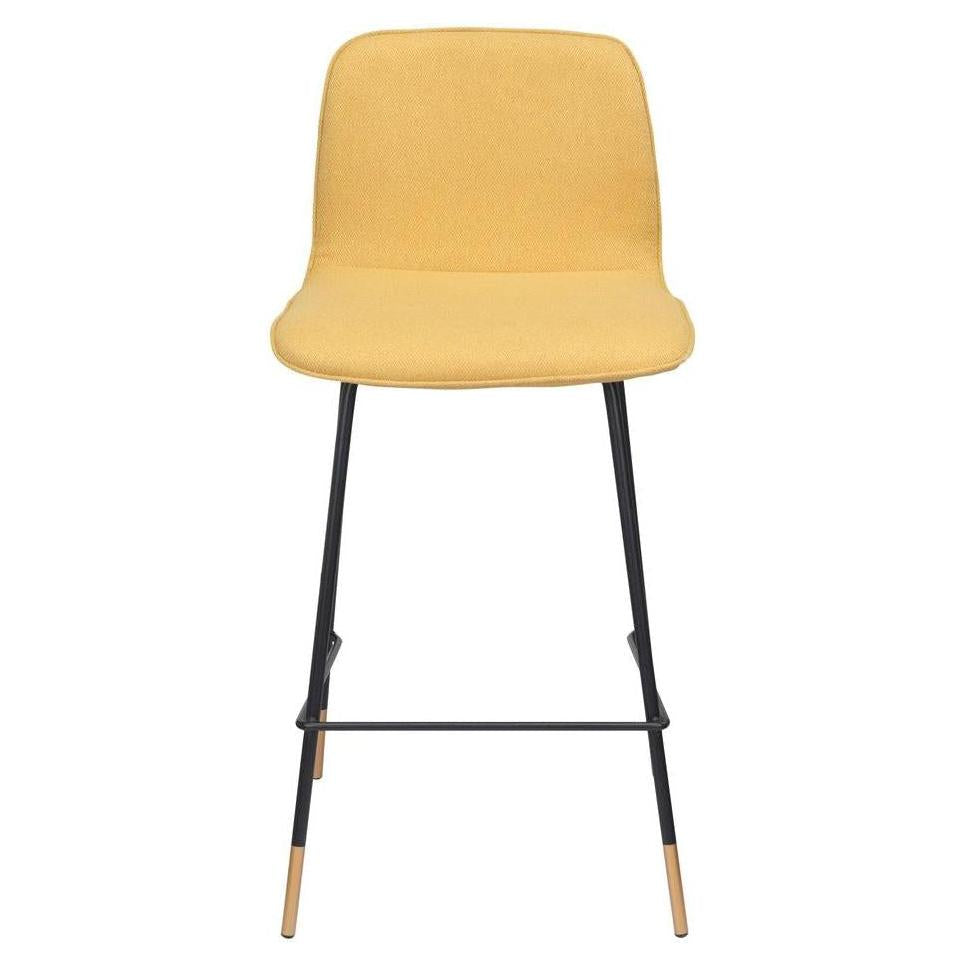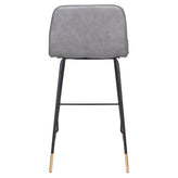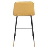 | Simple and elegant, the Var Counter Chair makes a statement in any space. It is a multifunctional chair that looks good in a glam, urban, or mid century modern room. The seat is covered in vinyl with a black powder coated steel base with painted gold tips. | |