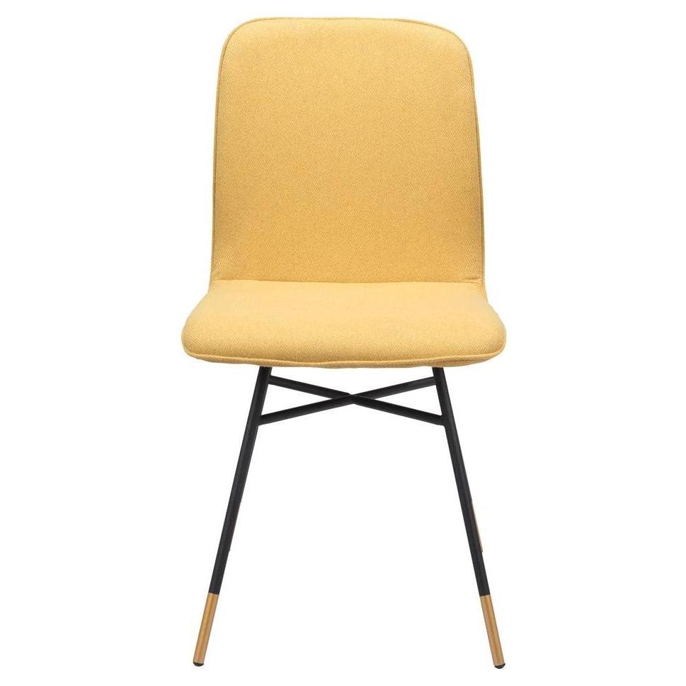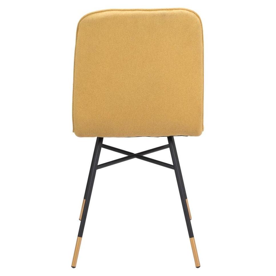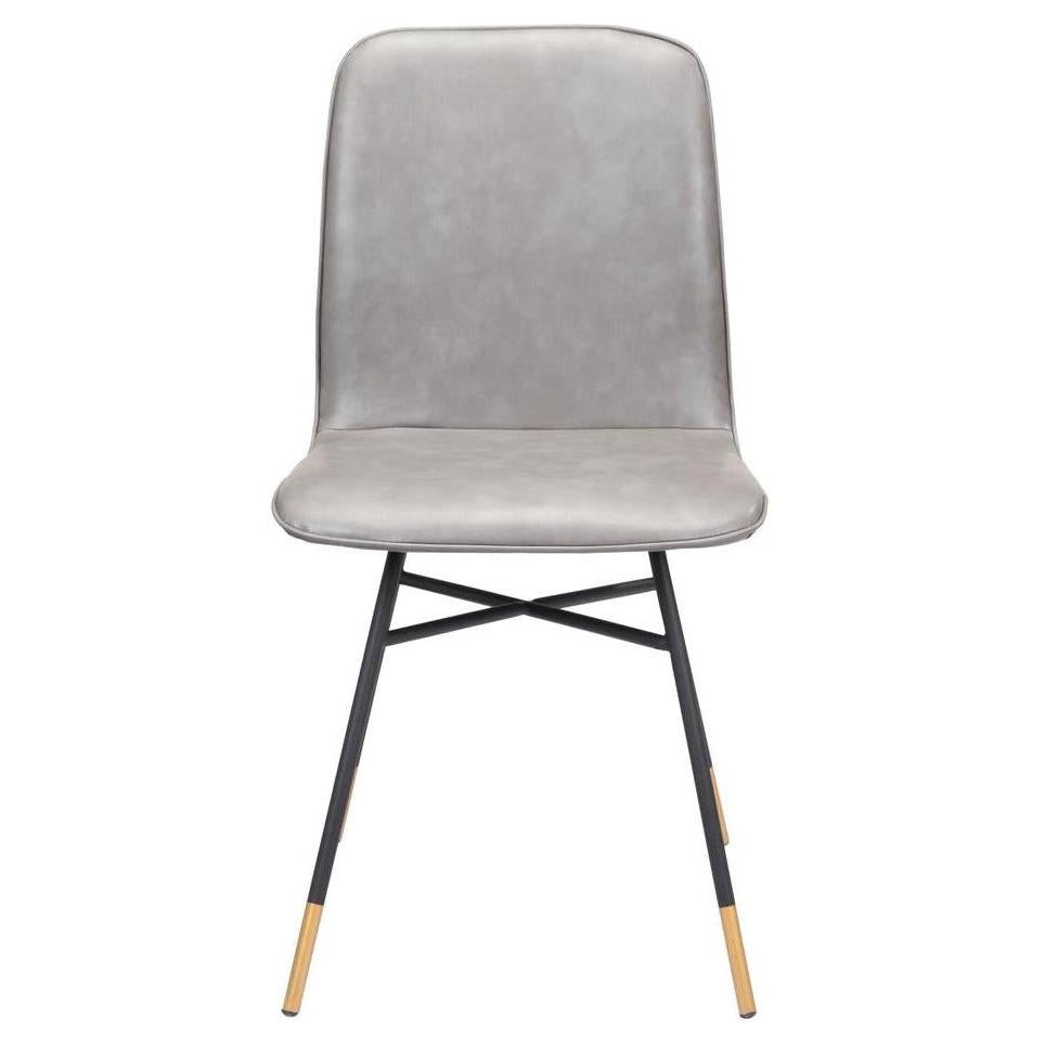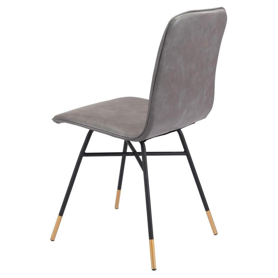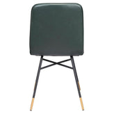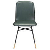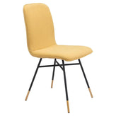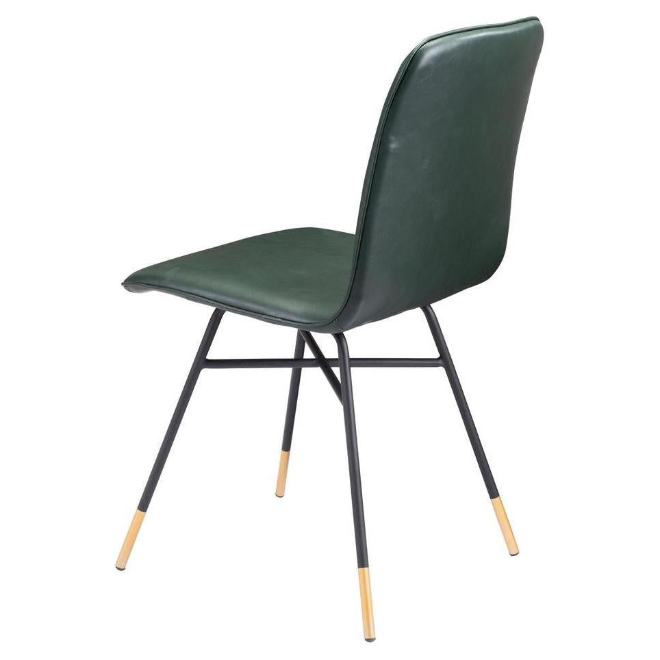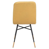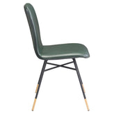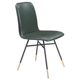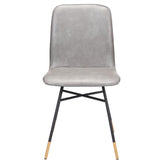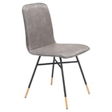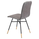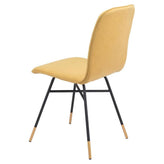 Simple and elegant, the Var Chair makes a statement in any space, whether work or dining or bedroom. It is a multifunctional chair that looks good in a glam, urban, or mid century modern room. The seat is covered in vinyl with a black powder coated steel base with painted gold tips. |