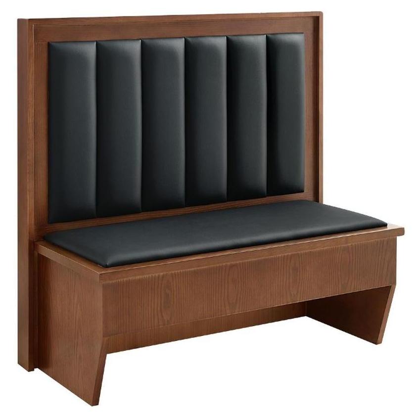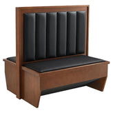 Veneer Frame 6-Vertical-Channel Back Single Booth w/ Black Vinyl Seat & Back, solid wood panel for the left, right and top