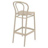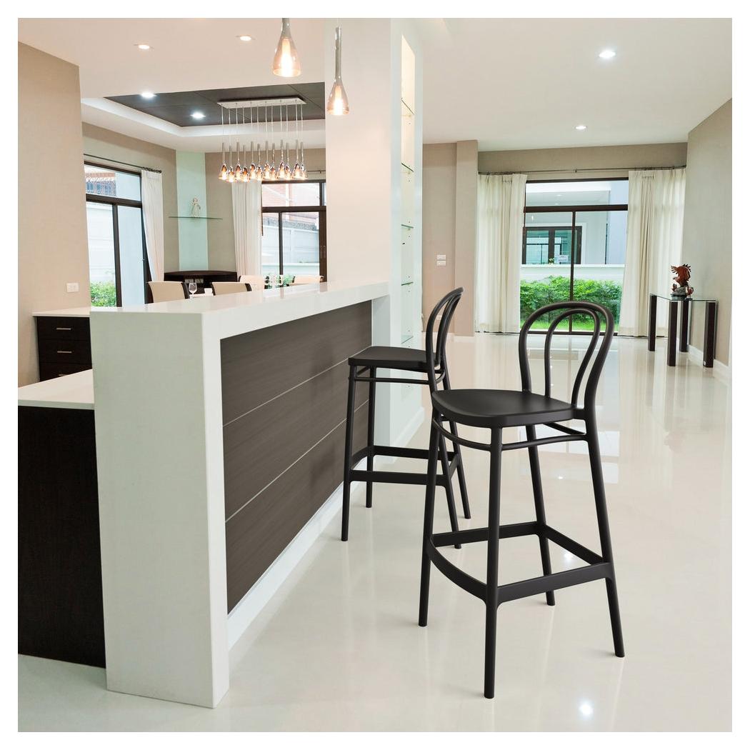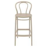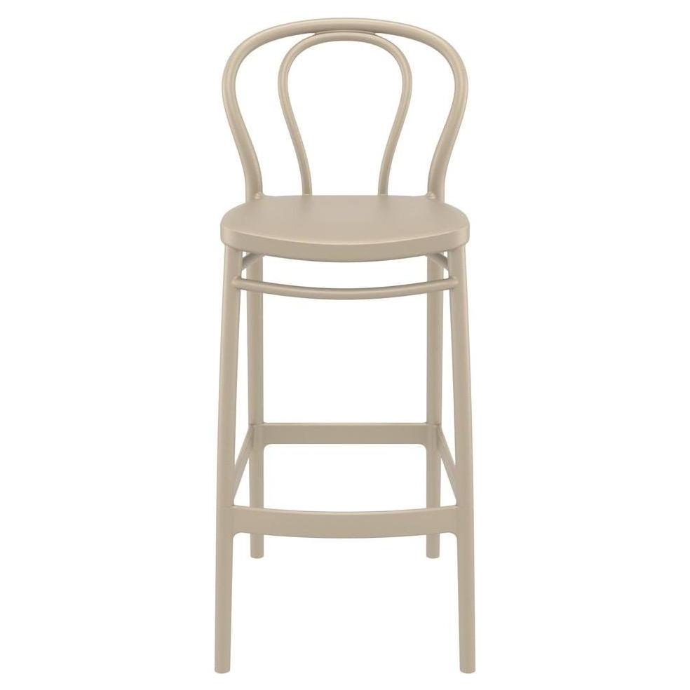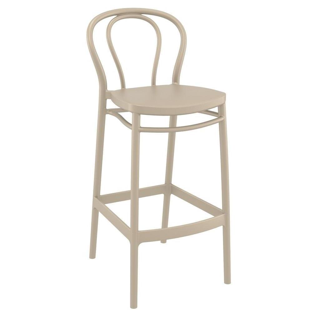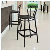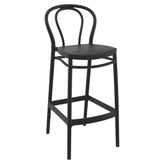 Outdoor bar high chair. Classic design. Made from polypropylene resin with gas injection molded legs. Suitable for indoors and outdoors. Perfect for heavy use areas. Suitable for restaurants, cafes and hotels. High quality commercial grade resin furniture - featuring refined designs, that are weatherproof, comfortable, and functional. Preferred for heavy use areas, pool sides, patios, beach and balcony use. Items are resistant to UV, salt, weather, sun tanning oils. |