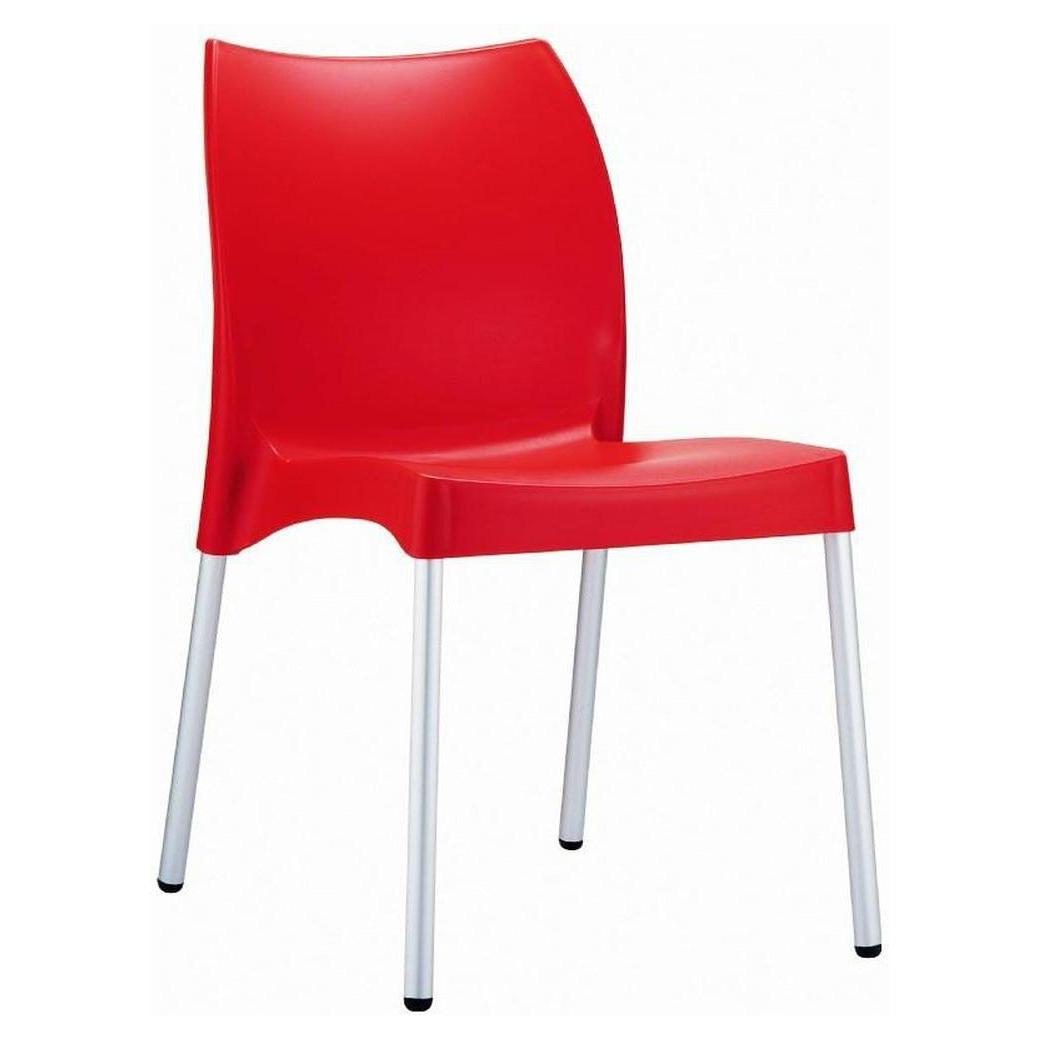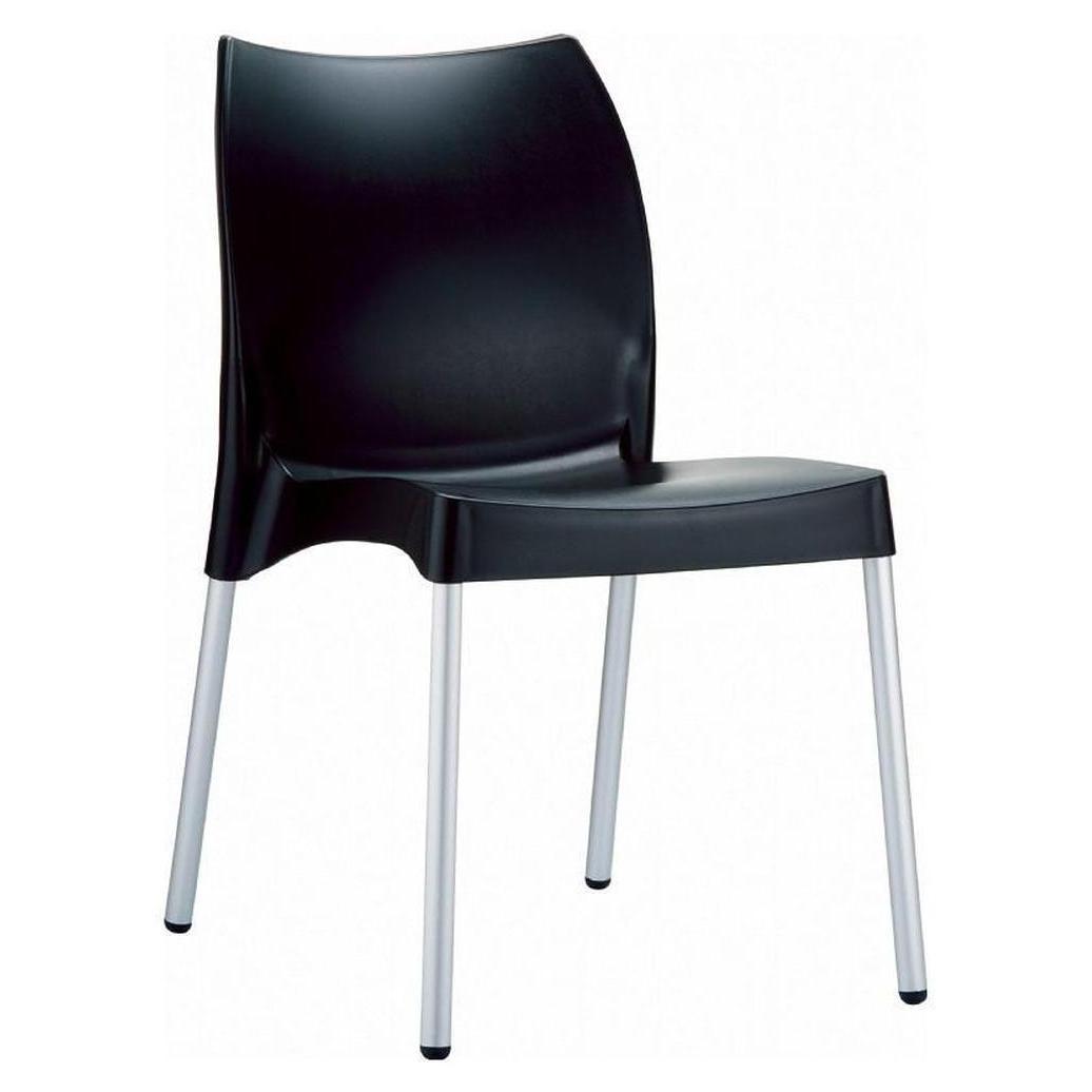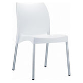 Vita resin indoor outdoor dining chair. Made from commercial grade resin with aluminum legs. Great for outdoor spaces, patios and decks. Used by restaurants, cafes and hotels. Legs are anodized aluminum.