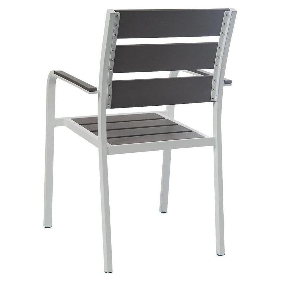 - Outdoor White Powder Coated Aluminum Armchair With Gray Imitation Teak Slats