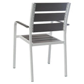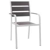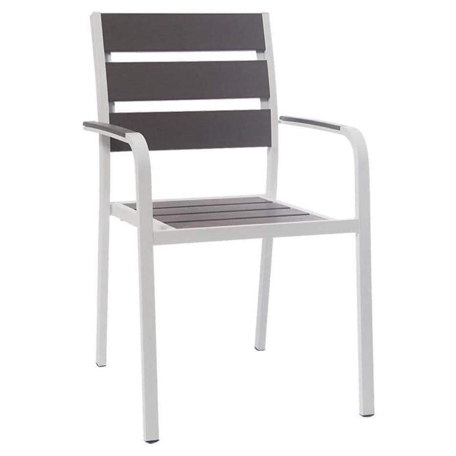 Outdoor White Powder Coated Aluminum Armchair With Gray Imitation Teak Slats