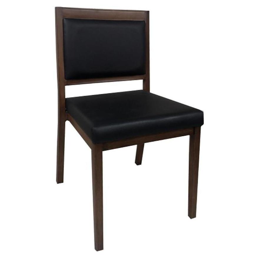 - Wood Grain Metal Chair In Walnut Finish Black Vinyl Seat And Back