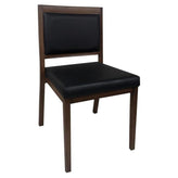 Our Wood Grain Metal Chair In Walnut Finish, Black Vinyl Seat And Back is of the highest quality, and is designed for commercial grade foodservice needs. This product is protected by our one year product warranty.