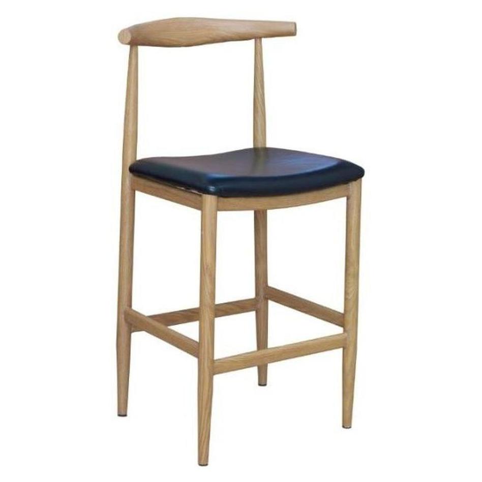 - Wood Grain Elbow Steel Bar Stool With Black Vinyl Seat
