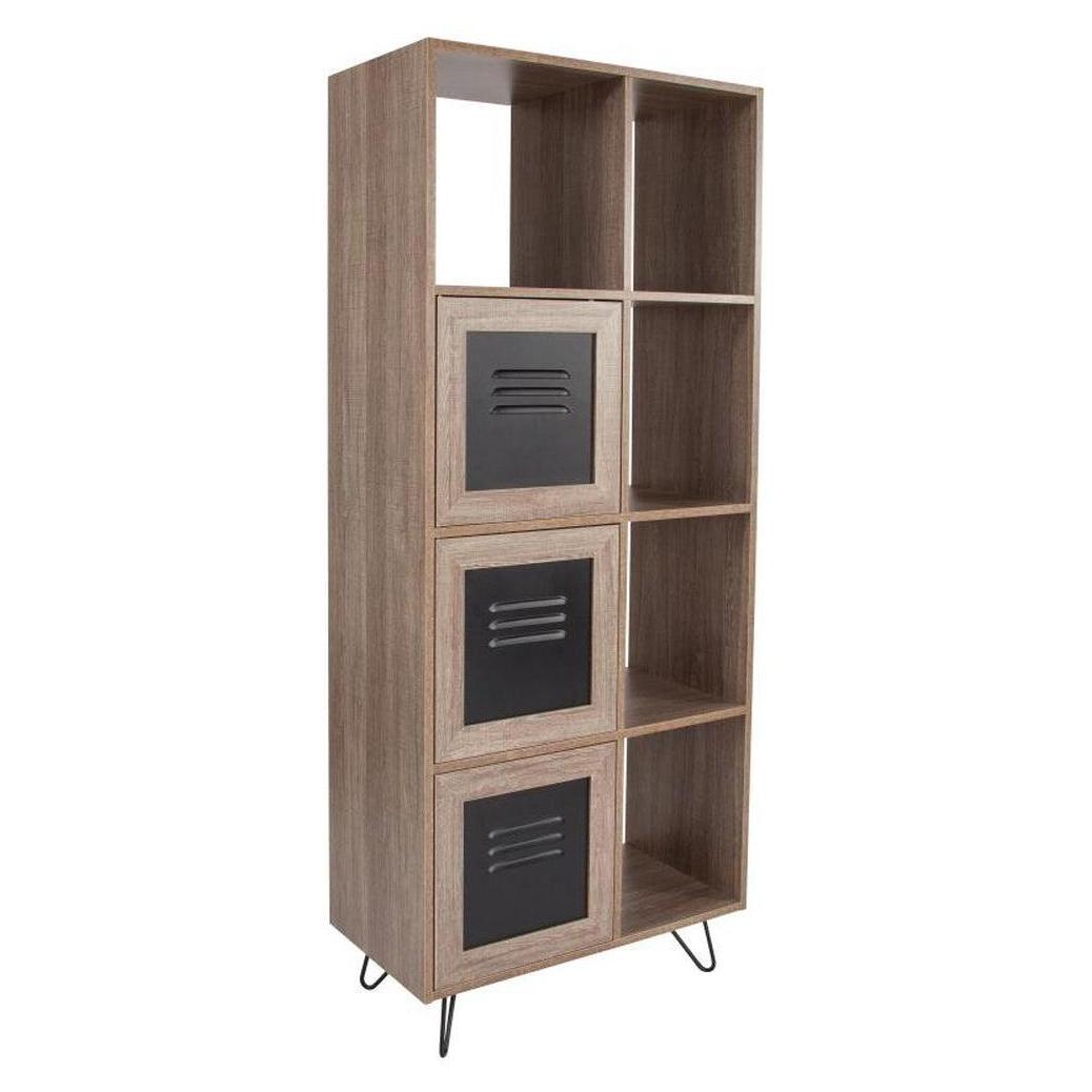 - Woodridge Collection 63"H 5 Cube Storage Organizer Bookcase with Metal Cabinet Doors in Rustic Wood Grain Finish
