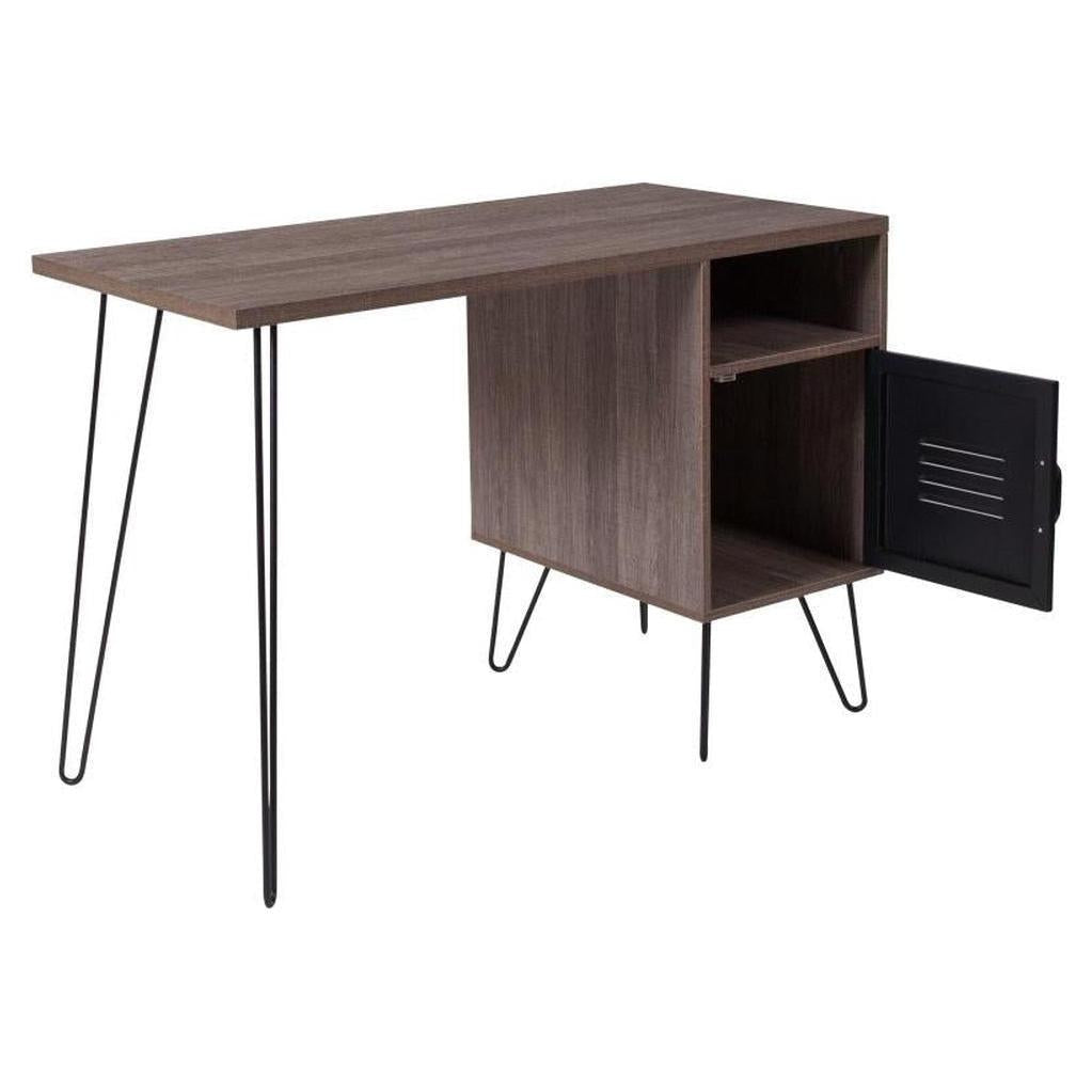 Woodridge Collection Rustic Wood Grain Finish Computer Desk with Metal Cabinet Door