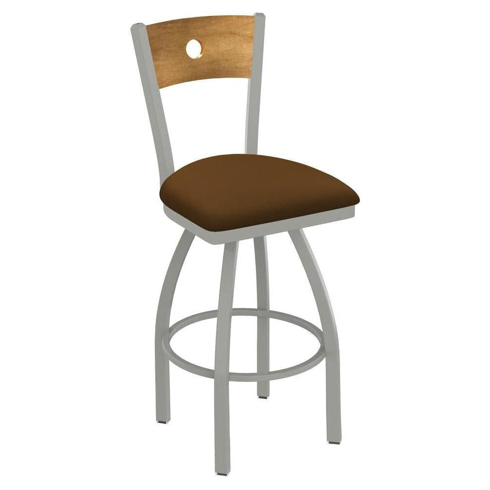 Customize your very own swivel bar stool with the help of Restaurant Furniture Plus! This XL Voltaire swivel bar stool has a contemporary design and provides superb back support. The frame is made from commercial quality steel that is strong and durable, and is powder-coated to ensure a long-lasting, rich finish. Elegant wood back is Maple with a Dark Cherry finish. Our wood seats are made of 1 1/4 inch hardwood that are dished for comfort. Our cushion seats are of the highest quality as well, utilizing a breathable, commercial grade vinyl or fabric. Underneath this is 2 1/2 inches of highly-dense foam to provide maximum support. The framework itself is very sturdy, using only solid MiG welds ensuring the integrity of the structure. You can't find a higher quality stool on the market.